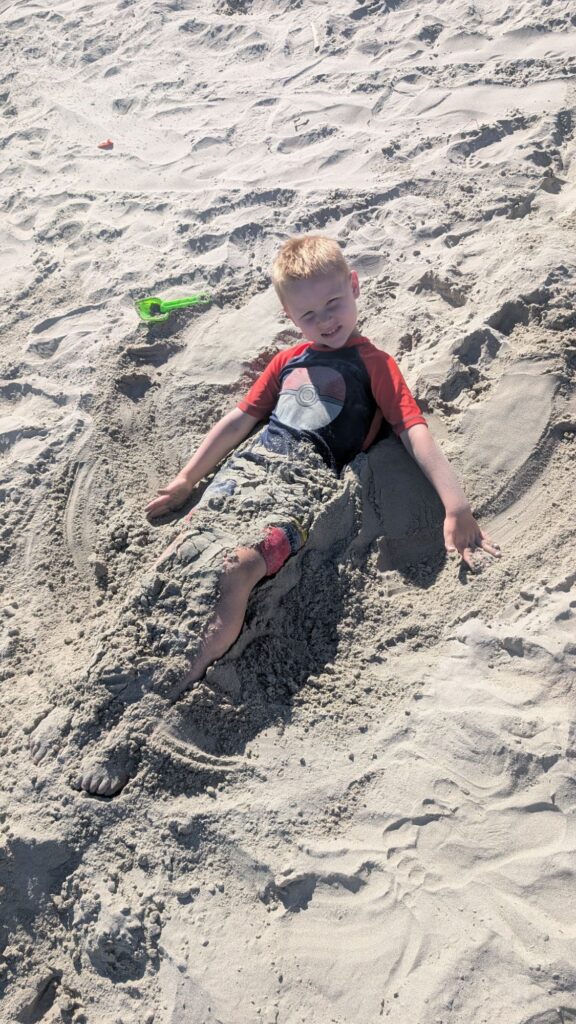 We also ventured out to the beach a few times and found a perfect spot close by. He could sit and play in the sand and water for hours, and he absolutely loved it. I even got a chance to relax a little too 🤣.